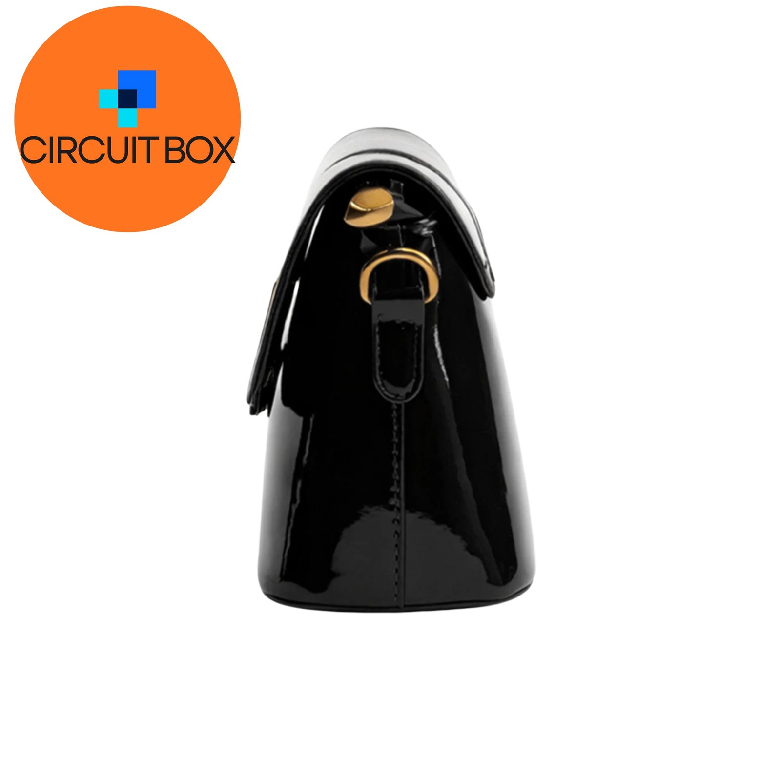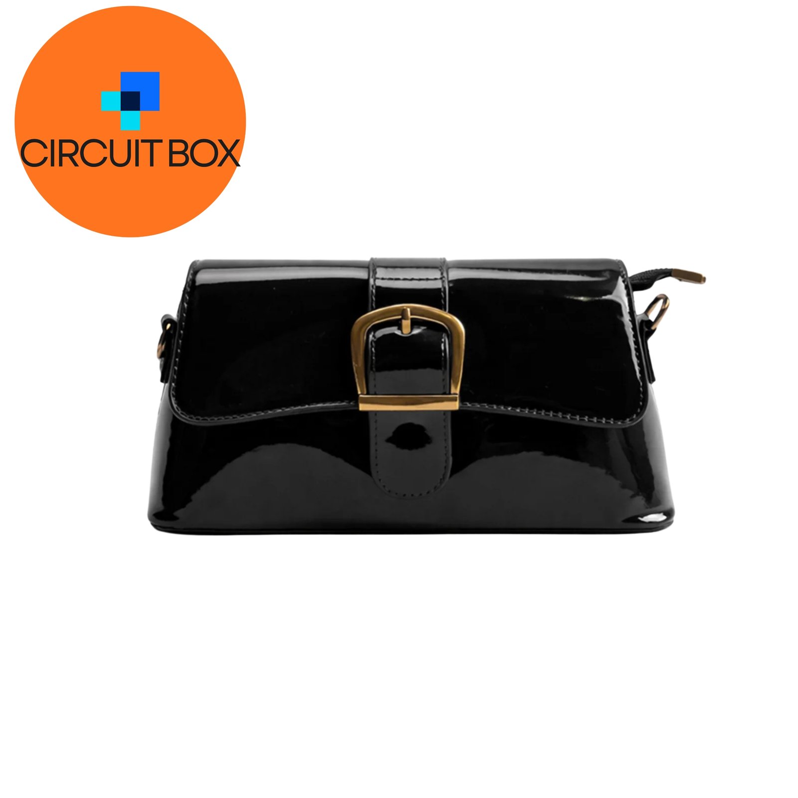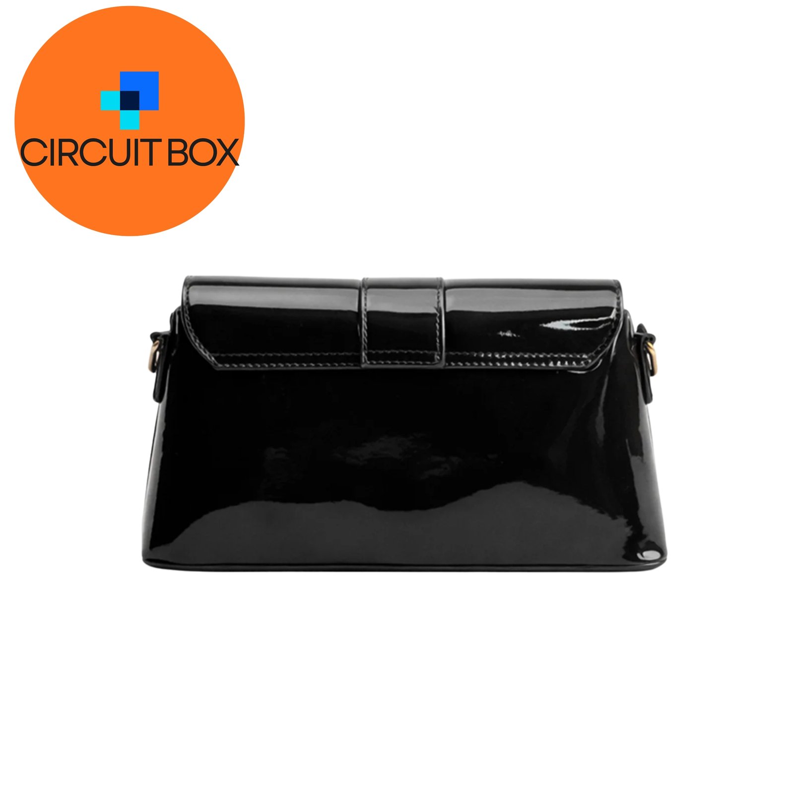 Circuitbox Black PU Clutch Bag with Strap – Adult Female, Patent Finish, Gold Buckle, Elegant & Compact (USA)
